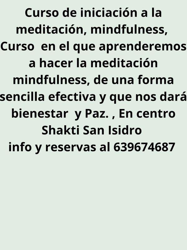 Curso de meditación mindfulness de dos días intensivos sábados y domingos a escoger entre varias fechas en horario de mañana y de tarde ver en el cartel principal info al 639 674 687Curso de meditación mindfulness de dos días intensivos sábados y domingos a escoger entre varias fechas en horario de mañana y de tarde ver en el cartel principal info al 639 674 687